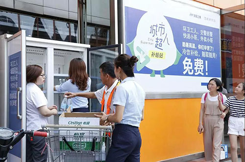 U宝宝们为无人看管冰柜补给,环卫大叔也一起来搬忙!